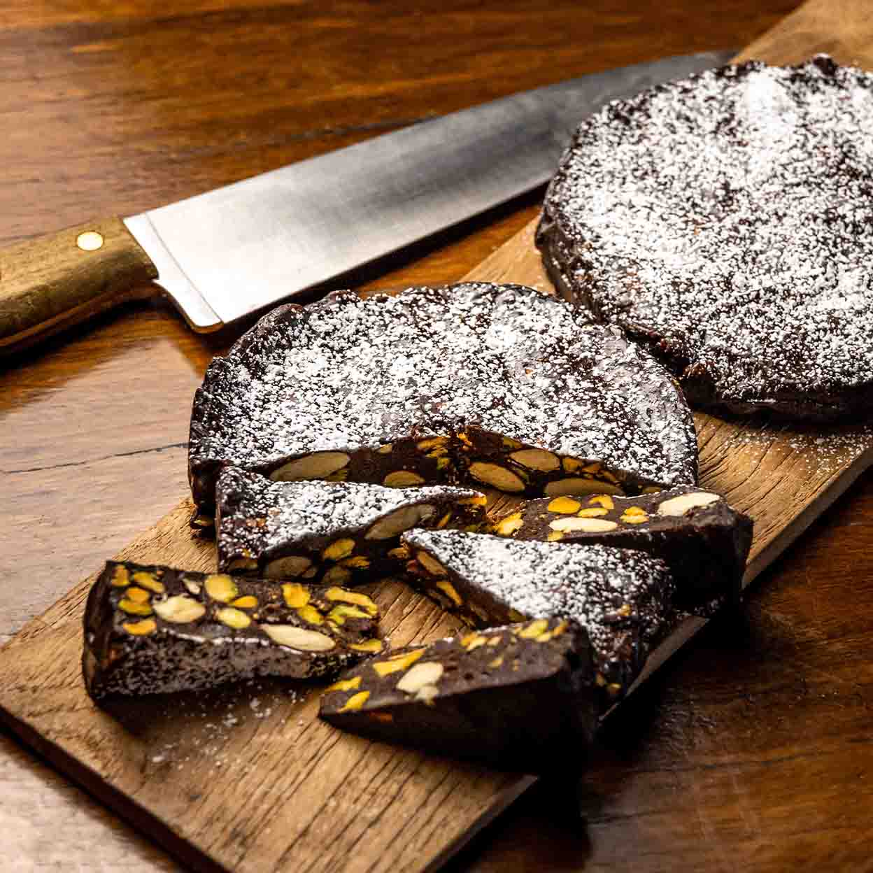 Handmade shortcrust pastry made with Australian butter, filled with apples sautéed in butter, brown sugar, and spices, and brandy and cider-soaked currants, raisins, and citrus peel.