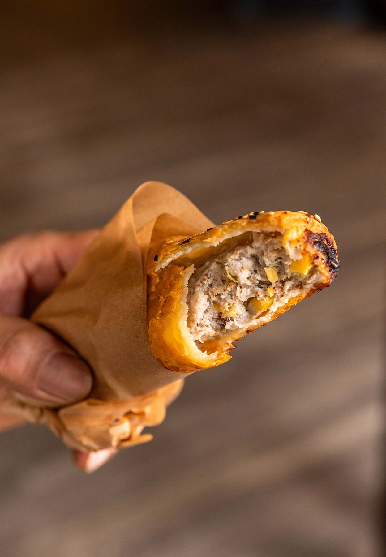 The Chicken, Bacon and Corn Sausage Roll has been one of those quiet cult classics over the years. The kind people ask about. The kind that gets a “when’s that coming back?” across the counter. It’s comforting, but not heavy. Savoury with a gentle sweetness from the corn, warmth from white pepper and five spice, and that buttery crunch you expect from us.